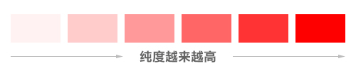 3、纯度(饱和度):指色彩的鲜艳程度——纯度越低,颜色越浑浊,纯度最低的是灰色(无彩色)。一般来讲,纯度越高,越有活力,充满朝气,纯度越低,则给人成熟稳重的印象。
