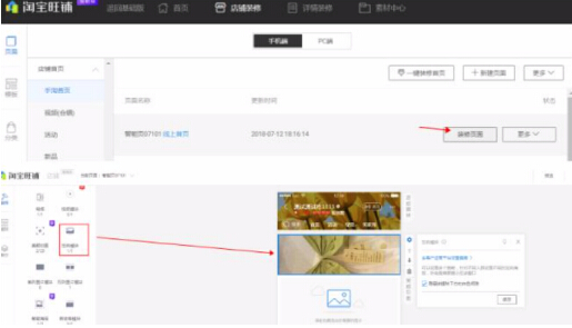 装修入口:【卖家中心】-【店铺装修】-【手机端】,找到要装修的首页点击“装修页面”,从左侧将“定向模块”拖到右侧,系统会展示在客户运营平台中已配置的策略,点保存后再发布.