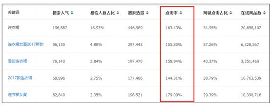 因为给你的是机会,能不能抓住机会,是最关键的,所以在新品扶植期第一周(尤其是第一周的最后三天)的时候,你必须要努力的保证你店铺的点击率。很多人会认为这个点击率主要就是主图引起的,但是实际上,关键词也是非常重要的一个因素。大家在生意参谋里面,用“市场”这个功能模块,查询关键词的时候,你可以知道每个词的点击率,所以在新品刚上新的时候,点击率是必须要关注的一个指标,只有给你机会你能抓住了,接下来搜索引擎才会有信心。